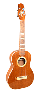 TENOR - I designed this uke while living in Hawaii to produce the sound that the local musicians liked. Light attack but lots of sustain and note clarity, strong in the mid-range. Good for solo work and also for strumming.